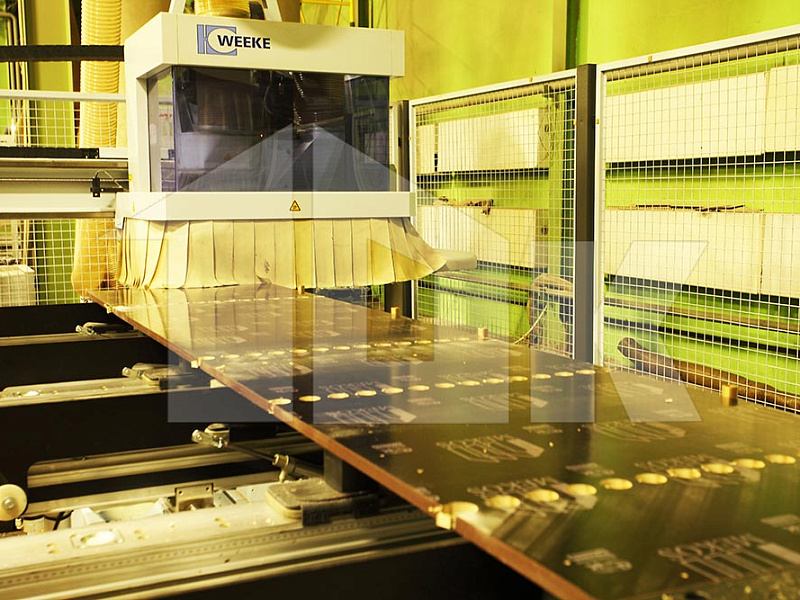 Раскрой, фрезерование и разметка ламинированной фанеры для палубы щитов осуществляется на двух автоматических обрабатывающих центрах с программным управлением компании «WEEKE» (Германия).