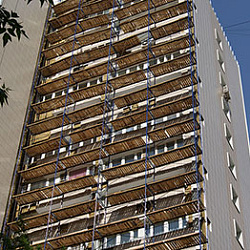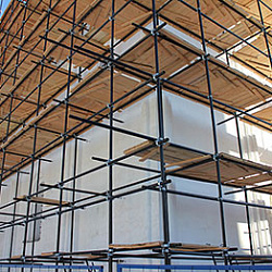 - практичность в использовании. Клиновые леса достаточно универсальны. Их можно применять при выполнении разных ремонтно-строительных фасадных работ независимо от сложности. Они применяются на объектах любой конфигурации.